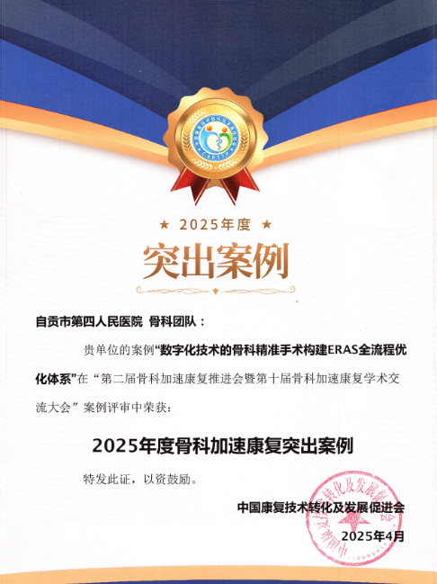 近日,中国康复技术转化及发展促进会公布了年度优秀案例评选结果,市四医院“数字化技术的骨科精准手术构建ERAS全流程优化体系”项目凭借创新性与显著成果,荣获“突出案例奖”。