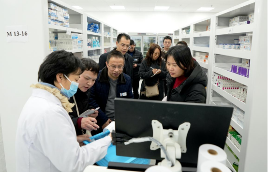 随后,在殷明刚院长及相关科室负责人陪同下,周琴副院长一行深入医院药剂科、检验科等科室进行了实地参观。参观过程中,双方重点围绕科室的智慧化建设、流程优化、质量管控、信息化应用以及精细化管理等具体工作展开了深入细致的现场交流与讨论。