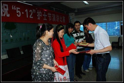 此次比赛准备充分,参与面广,既有临床一线的护理人员,也有行政后勤员工,甚至有2名男护士勇敢地走上了演讲台。参赛选手以自己的亲身经历为切入点,通过生动感人的细节,以演讲的方式,传神地表现了全院医务人员的辛勤付出与无私奉献精神,展现了四院人“关爱生命,呵护健康”的优良传统。通过认真评选,ICU护士袁文洁获得此次比赛一等奖,许文静、曹越、谢雪岭获二等奖,刘春慧、钟雪、曾田勇、闵利获得三等奖。刘建辉院长在赛后总结发言中,对护理队伍涌现出这样一批优秀人才表示欣慰,并为一等奖获得者颁发了奖证。