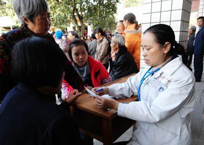 图为医务人员为学生及家长健康指导
