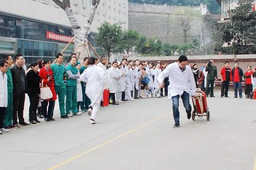 此次消防运动会注重理论与实践相结合,设置了60米干粉灭火救人操、消火栓连接水带出水操、4×100米消防接力和文武双全四个竞赛项目。为宣传和普及消防知识,比赛场地周围还设置了消防知识宣传展板,并邀请市消防支队防火处有关人员现场指导。这次比赛活动,增强了医务人员筑牢防火墙的意识,通过寓教于乐的方式让职工掌握了消防知识、增强了消防技能。医院党委副书记龚祥忠表示,今年将每年举办一次消防运动会,以此打造一支训练有素的消防应急队伍,为平安医院建设作出积极贡献。