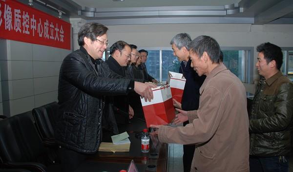 自贡市医学影像质控中心挂靠我院,我院放射科主任刘文军担任质控中心主任,我院放射科副主任罗敏担任副主任。会上,陈张铭副局长向我院授牌,并就成立质控中心的目的、意义等做了详细阐述,同时也对影像质控中心提出了明确要求。刘建辉院长表示,影像质控中心落户我院,不仅是一份荣誉,更是一份责任,医院要做好全市影像质控工作,努力提高全市放射科诊断质量。会上,市医学会会长胡俊宣布了自贡市第六届放射专委会委员名单,刘文军担任专委会主任委员,罗敏担任委员兼秘书。