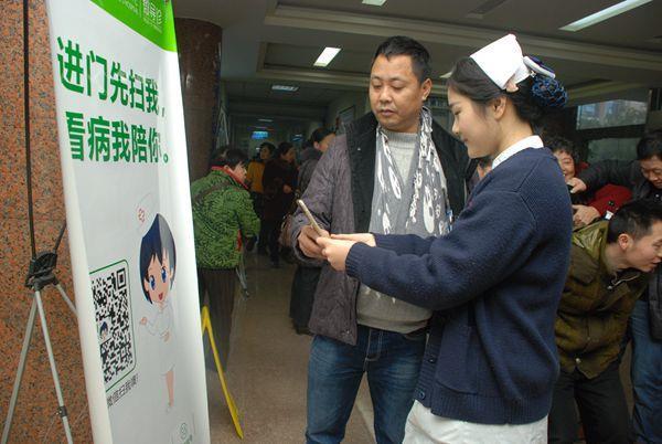 在该院门诊大厅,导医台工作人员正向一位中年男士介绍医院“微导诊”服务。中年男士按导医人员提示,用手机成功添加我院微信号,点击“就医指南”中“预约挂号”,很快挂到自己需要的专家号。“以后来看病,在家里就可以先把医生的号挂好了,不用再排队,现在的科技是越来越发达了。”该男士高兴地说。据悉,我院在传统现场预约和电话预约的基础上,开通了手机APP预约、网络预约以及微信预约。自1月8日开通微信预约以来,已有14名患者通过手机成功预约挂号,极大地方便了看病就医。