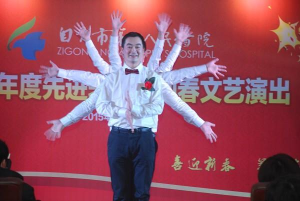 会上,医院领导为骨科等6个先进集体和20名先进个人进行了颁奖。四川卫生康复职业学院党委书记、我院院长刘建辉对获奖者表示祝贺,也感谢全院职工为医院发展所做的努力,同时向大家致以新春的祝福。颁奖之后,随着欢快的旋律,舞蹈《扭起来》拉开了2015年迎春文艺演出的序幕。舞蹈《心中的旗帜》充分表达了四院人对祖国的热爱之情;体检中心表演的《时装情景秀》展示了当代女性健康向上、无私奉献、开拓进取的精神风貌;哑剧《规培医生的一天》、舞蹈《玫瑰花》等风趣幽默的表演,将观众带入了新春喜庆祥和的气氛之中。精彩纷呈的节目轮番上演,尽情展示了“四院人”的多才多艺。