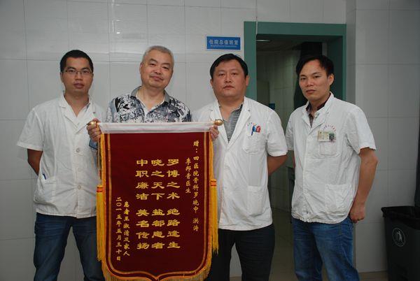 “手术成功后,我们非常欣慰,为了感谢几位医生,我多次请他们出来吃顿便饭,但都被他们谢绝了,为了表达我们的感激之情,特意写了一首藏头诗绣在锦旗上赞扬他们精湛的技术和高尚的医德。”患者儿子说。