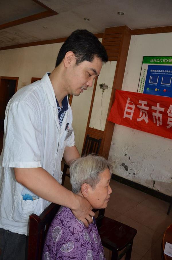 志愿者为老人检查
