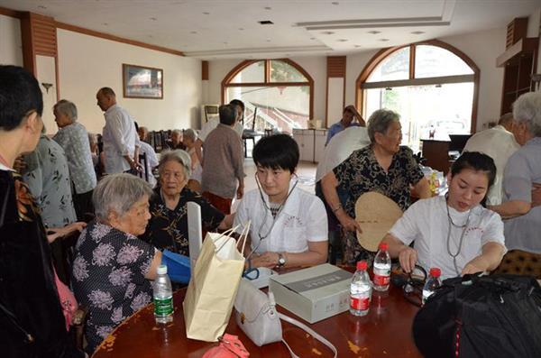11日上午9:30,来自眼科、耳鼻咽喉头颈外科、妇产科、甲状腺乳腺外科、烧伤整形美容外科、病理科等11名医务人员早早来到双兴老年公寓,眼科志愿者用检眼镜为老人们检查晶状体、玻璃体及视网膜情况,耳鼻喉科志愿者用前鼻镜、电耳镜、压舌板为老人们详细检查耳鼻咽喉情况,甲状腺乳腺外科志愿者为老人们检查身体,有的志愿者为老人们测量血压,有的志愿者陪老人聊天,评估健康状况,并为老人量身制定健康方案。