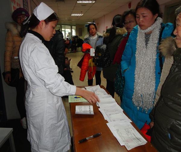 据了解,春节长假结束,在市四医院门诊来看病的患者就打起了拥堂,门诊量呈“井喷”状,特别是心血管、呼吸道、消化道、内分泌等疾病患者,比平时多了一倍。为了应对突然增多的患者,该院采取了多项措施,全方位调动医疗资源,满足患者需求。一是从保卫科抽调人员到人员密集的特检科、候诊区等地方协助维持秩序,并帮着门诊人员编号。二是加大门诊护士的巡查力度,门诊护士不仅要为病人初诊,还要仔细观察周边病人的情况,识别危重病人,确保危重病人安全。三是专门安排2名工作人员引导患者利用自助挂号、缴费机来挂号缴费,缓解排长队的现象。四是为了让来的病人都能看上病,协调各科室医生,门诊看不完的联系病房,让病房医生帮着看。五是不限号,给医生加号适当延长医生下班时间,几乎每个医生的接诊患者数比平时都有所增加。其中妇产科主任刘玉琴接诊病人80人次,皮肤科医生李军接诊患者77人次,罗模桂接诊75人次,消化内科主任沈鹏臻接诊68人。