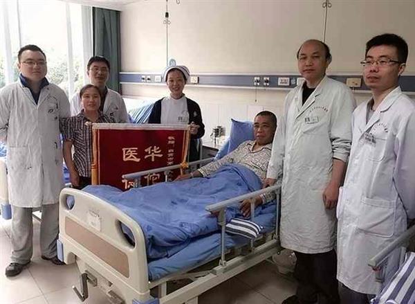 4月18日,来自富顺赵化的三轮车夫张师傅出院了,他的家人将一面绣有“华佗在世,医德高尚”的锦旗送给了骨二科的王荣诗和全体医护人员。
