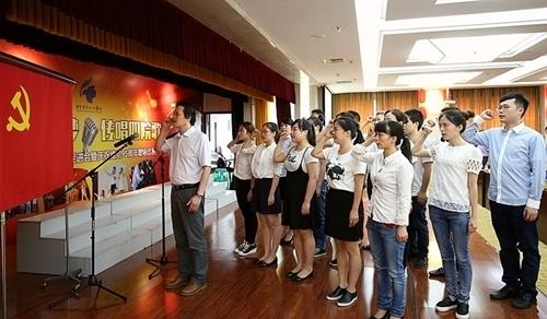 下午3时,歌咏比赛正式开始,响亮的音乐声响彻学术报告厅,《天耀中华》《我和我的祖国》《中国,中国,鲜红的太阳永不落》《歌唱祖国》《我们走在大路上》《团结就是力量》《走向复兴》等一曲曲慷慨激昂的歌曲唱出了全院九个支部党员们对党的祝福。
