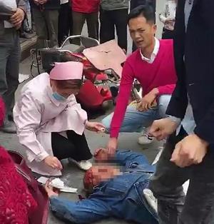 李强回忆说,事发后不久,他和家人正巧路过该路段,看到前方公路边站着很多人,身为医务人员的他意识到“出事了”。李强快步上前查看情况,如他所料,只见一名男子躺在地上不停的打着哆嗦,头部、身边的地面有很多血迹。