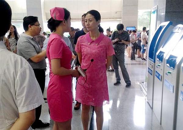 检查组首先来到导诊台、收费处等服务窗口,查看了工作人员衣帽着装、文明用语使用情况,随后查看了医院内部文明标语、宣传展板、宣传视频短片和相关设施,了解医院志愿服务情况。