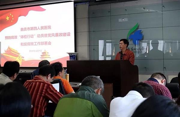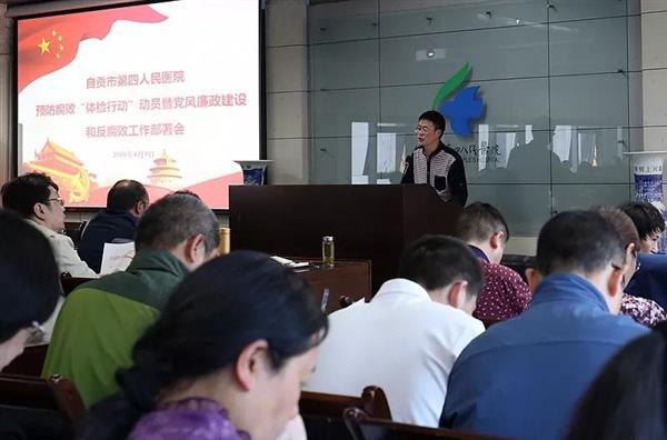 4月9日下午,自贡市第四人民医院在多功能厅召开预防腐败“体检行动”动员大会和党风廉政建设和反腐败工作部署会。会议由院长刘建辉主持,各科室负责人及职工代表共100余人参加会议。