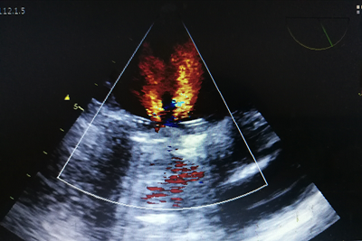 患者邹女士,风湿性心脏病二尖瓣置换术后13年,前几天经胸超声心动图提示二尖瓣机械瓣少量反流,怀疑是否有人工二尖瓣机械瓣瓣周漏。6月14日一早,在市四医院超声医学科彩超室,医务人员为其行局麻下经食道超声心动图检查,清晰显示反流束来自于瓣环内,明确了没有瓣周漏,给临床诊断提供了很好的依据。