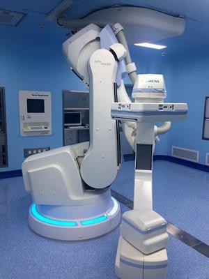 近期,又一重器在自贡市第四人民医院投入使用——新一代平板血管机Artis Zeego,它具有非常强大的功能和优越的性能,其X射线辐射剂量更低,更加安全,适用于心脏、神经、综合介入等各种微创治疗。据了解,该机器在国际上具有领先水平。