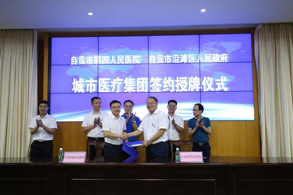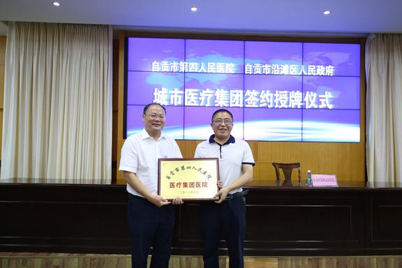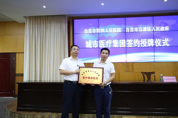 签约仪式后,刘建辉、邱桂刚分别向沿滩区人民医院、瓦市中心卫生院授牌。