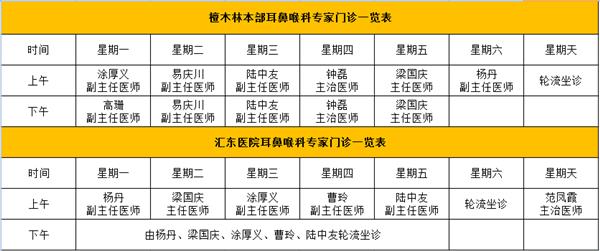 附一份耳鼻喉科专家坐诊表