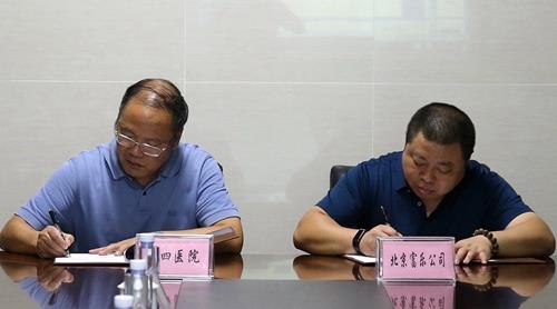 接下来,院长刘建辉与富乐公司董事长胡桓宇签署合作开发协议。