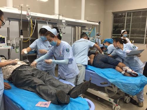 在此次车祸事故的医疗救援中,我院做出了快速、有效的医疗急救反应,整个抢救工作紧张有序、协调一致,短短40分钟即完成了分诊、救治工作。