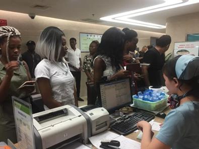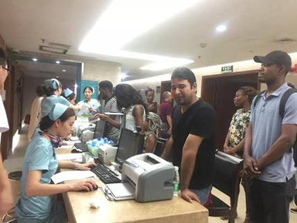 自5月市四医院健康管理中心迎来首位国际友人体检,并获客户好评后,近日,健康管理中心又迎来30多人的“国际团体”体检!他们来自坦桑尼亚、几内亚、刚果、泰国、韩国、柬埔寨等国家,在体检完成后个个都竖起大拇指——“Very good!Thank you!”