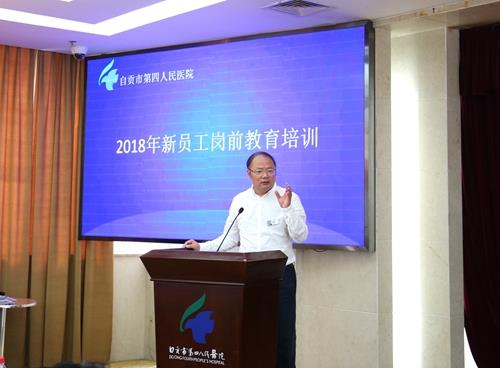 9月17日,市四医院2018年新进员工岗前培训班隆重开班。院长刘建辉率医院领导班子及职能科室负责人与新职工亲切见面,并代表医院致辞。活动由党委副书记、副院长邱桂刚主持。