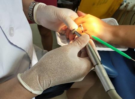 来到口腔科大厅,刚好遇到正从诊断室出来的副主任医师王宁楠,导医护士简单向王宁楠介绍了刘女士的情况后,他便立即为患者查看手指情况。