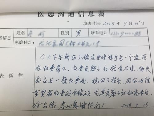 在联系上患者时,患者尚不知道自己手包已经遗失,在听到黎小红打来电话时,特别感动,在回到收费处取到手包后更是对黎小红进行了称赞,并写下了这封感谢信,为财务科人员的高素质、好品德表示了肯定。
