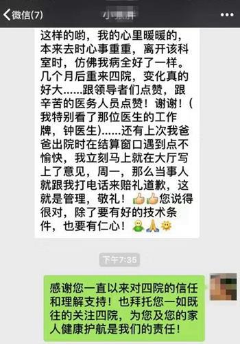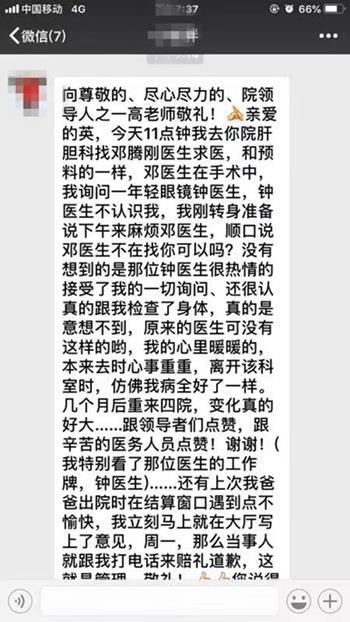 张阿姨说,“这个年轻医生姓钟,我本以为素不相识的,我刚转身准备说下午再来找下邓腾刚医生,顺口说了句邓医生不在,找你可以吗?没想到钟医生很热情的接受了我的一切询问,还很认真的给我检查了身体,真的意想不到,医生可以这样负责,我的心里暖暖的。”