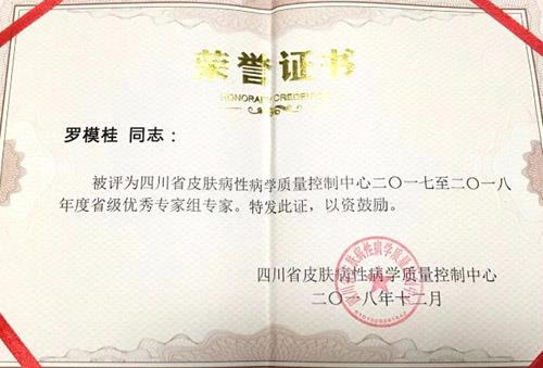 近日,市四医院皮肤美容科再次被评为四川省皮肤病性病质控中心优秀质控分中心!皮肤美容科罗模桂被评为四川省优秀质控专家!