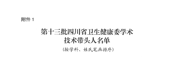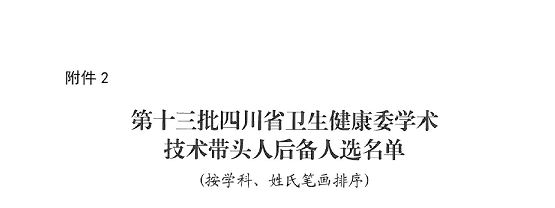 近日,四川省卫生健康委员会公布了第十三批四川省卫生健康委学术技术带头人及后备人选名单。