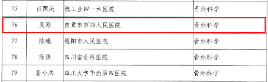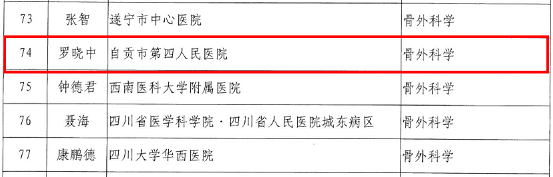 通知中,自贡市第四人民医院罗晓中、罗敏被确定为学术技术带头,吴刚、徐平被确定为学术带头人后备人选。