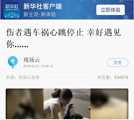 据现场目击者称,伤者当时心跳都停止了,幸好遇见在附近看夜景的市四医院护士曾正辉。
