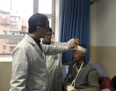 随后,医院迅速组建了一支专家团队,由急诊科副主任徐平担任队长,成员包括骨科钟泽莅副主任医师、EICU曾超主治医师、急诊科护士曾燕丽以及司机陈涛,在荣县政府、市卫健委统一领导和部署下开展工作。专家团队赶到荣县后,当即了解民众伤亡情况,对荣县地震伤员的医疗救援工作进行指导,为荣县地区建立统一的医疗指挥调度体系献计献策。专家团队还分别对荣县人民医院、荣县中医院、荣县新城医院等的多名伤员进行查房,仔细分析病人的受伤情况,对诊治方案进行一一指导,圆满完成了对荣县城区住院的地震伤员的急救工作。