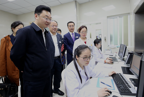 4月3日下午,副市长陈张铭率队来到我院进行调研,实地了解了医院的发展建设情况,并听取了医院人才、设备、学科、服务等情况汇报。市政府副秘书长黄晓春、市卫健委副主任缪皖川和医院领导及相关科室负责人陪同调研。