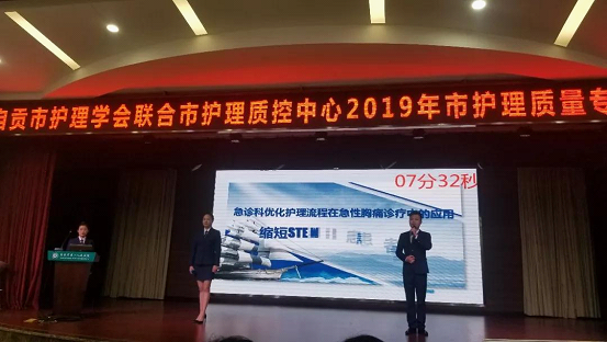 4月16日,在 “自贡市护理学会联合市质控中心2019年市护理质量专项比赛”汇报中,市四医院急诊科护士陈成、刘函莉、曾燕丽比赛项目《缩短STEMI患者D-TO-B时间》在本次“自贡市护理质量专项比赛”脱颖而出,获得一等奖。
