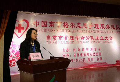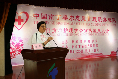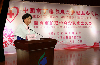 中国南丁格尔志愿护理服务总队理事长、第43届南丁格尔奖章获得者张利岩宣读总队批复,并做重要讲话。她表示,中国南丁格尔志愿护理服务总队收悉四川省自贡市护理学会加入总队的申请,鉴于这支队伍已经开展了多项而系统的志愿服务,并且收到很好的成效,根据《中国南丁格尔志愿护理服务总队章程》的有关规定,经总队理事会审核,同意成立“中国南丁格尔志愿护理服务总队四川省自贡市护理学会分队”,为总队的第343支分队。因为有共同的志愿情怀,因为崇尚南丁格尔精神,因为力践红十字行为,大家才能一起见证四川省自贡市护理学会分队的成立,这是中国南丁格尔志愿护理服务总队的新收获、新拓展,是对护理专业价值的又一次传播。她希望自贡市护理学会分队,认真学习总队章程,继续弘扬红十字人道、博爱、奉献精神,广泛宣传和践行红十字运动的七项基本原则,充分发挥现有的志愿服务能量,将志愿服务精神和专业,传播到祖国西南的每个城市和乡村,扎扎实实为老百姓的健康服务。