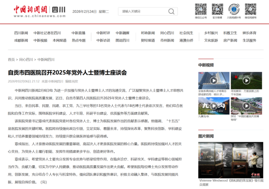 中新网四川新闻2月6日电 为进一步加强与党外人士暨博士人才的沟通交流,广泛凝聚党外人士暨博士人才思想共识,共同推动医院高质量发展,近日,自贡市第四人民医院召开2025年党外人士暨博士座谈会。