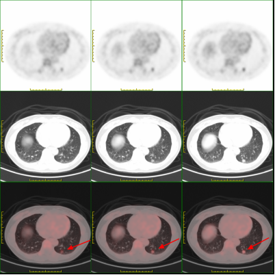 “查癌神器”PET/CT知多少时间:2024-10-16 浏览量:3190 来源:自贡市第四人民医院 作者:癌症,在我们普通老百姓心目中,跟魔鬼一样,因为它会夺走我们的生命,更让人感觉到恐惧的是很多恶性肿瘤刚开始很难发现,而被发现时往往已是中晚期,来不及治疗。如果有一种检查能够早期发现癌细胞,是不是可以把癌症扼杀在摇篮里呢? 答案是:有,那就是PET/CT。市四医院于2021年1月6日启用PET/CT至今,已有近4年时间,医务人员积累了丰富的诊断经验, 案例1 近期,在外务工的市民何先生无意间发现自己左颈部出现有肿块,随后去到当地医院检查,超声提示其左颈部有一个4.9厘米×2.9厘米的包块,彩超提示为:双侧颈部多发淋巴结。为得到进一步诊断和治疗,何先生选择回到了自贡,在市四医院进行PET/CT检查提示为食管癌伴颈部纵隔淋巴结转移。随后,医务人员为其进行胃镜下活检,明确为食管鳞癌。病情得以明确后,何先生在市四医院得到了妥善的治疗。