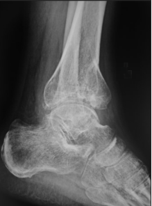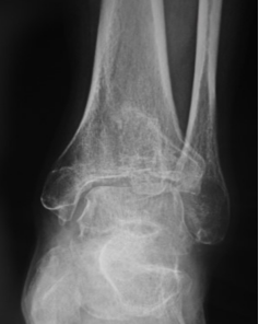 三、踝关节骨关节炎的病因 踝关节骨关节炎的病因主要包括以下几个方面: 年龄因素:随着年龄的增长、运动量的增加,踝关节软骨的自然磨损加剧,这是导致踝OA的主要原因之一。 创伤与劳损:踝关节的严重创伤(如骨折、扭伤)或长期劳损(如频繁的高强度运动)都会加速软骨的磨损和退变。 遗传因素:有骨关节炎家族史的人,其患病风险较普通人高。 体重因素:过重的体重会增加踝关节的负担,加速软骨的磨损和退变。 其他因素:如关节畸形、关节感染、代谢性疾病,也可能导致踝关节骨关节炎的发生。 四、踝关节骨关节炎的临床表现 踝关节骨关节炎的临床表现主要包括以下几个方面: 疼痛:踝关节疼痛是踝关节骨关节炎最常见的症状之一。疼痛通常在活动后加重,休息后缓解。 肿胀:踝关节周围可能出现肿胀,尤其是在病情较重或活动过度时。 僵硬:早晨起床或长时间静止不动后,踝关节可能出现明显的僵硬感,活动后可逐渐缓解。 活动受限及步态异常:随着病情的进展,因关节退变加重,踝关节出现功能障碍,甚至踝畸形及步态异常,如跛行,影响日常行走和运动。 其他症状:如活动时出现踝关节摩擦音、踝关节畸形等。 五、踝关节骨关节炎的诊断 目前应用最广的是踝关节骨关节炎分期为Takakura-Tanaka分期: 0期:踝关节平行,无关节炎征象; Ⅰ期:踝关节平行,无关节间隙狭窄,有早期软骨下骨硬化或骨赘形成; Ⅱ期踝内侧关节间隙狭窄,无软骨下骨接触; Ⅲ期又可分Ⅲa期和Ⅲb期: Ⅲa期 踝内侧间隙消失,软骨下骨接触面局限于内侧; Ⅲb期 踝软骨下骨接触延伸至距骨穹窿部; Ⅳ期 踝关节间隙消失伴全部软骨下骨接触。 确诊踝关节骨关节炎,通常需要进行一系列的检查和评估,可通过以下这些检查确诊该病: 体格检查:踝关节的外观出现畸形、踝活动范围减小、踝关节的压痛情况等。 影像学检查:最重要的诊断依据:如X片检查、CT检查、MRI检查、超声波检查等,其中X片及CT对诊断尤为重要。 X片:检查可以显示关节间隙狭窄、骨赘形成、软骨下骨硬化等特征性表现; CT检查:提供高分辨率的骨结构影像,特别适用于评估关节内骨折和骨赘的形成情况; MRI检查:更清楚、详细地显示软骨、滑膜组织的病变情况,它对早期软骨损伤及关节内软组织异常有较好的诊断价值,特别适用于复杂病例或需要进一步了解软骨状态的患者; 超声波检查:有助于评估关节积液量。
