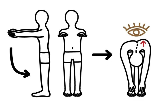 按图观察很简单 2.前屈试验:孩子保持站立,伸直双膝,双臂对掌伸直,缓慢弯腰,尽量保持直角,双臂下垂直双膝。检查者自后胸部位对孩子的脊柱两侧、背部进行观察,评估是否存在脊柱两侧高低不平、背部不对称情况。