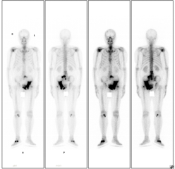 锶89治疗肿瘤性骨痛的实际应用时间:2025-12-17 浏览量:331 来源:自贡市第四人民医院 作者:肿瘤性骨痛是恶性肿瘤骨转移常见并发症,严重影响患者生活质量与生存期,常规止痛药物易出现耐药性、不良反应多等问题。锶89作为一种靶向性放射性治疗药物,通过特异性聚集于骨转移灶发挥杀伤肿瘤细胞、缓解疼痛作用,已成为肿瘤性骨痛综合治疗的重要手段。我们将从适应症、禁忌症、联合治疗、病例分享等方面,为临床诊疗及患者知识普及提供参考。 一、适应症 锶89为亲骨性放射性核素,静脉注射后可快速被骨代谢活跃区域(骨转移灶)摄取,能精准作用于肿瘤细胞并抑制其增殖,同时破坏肿瘤骨转移灶血供,达到止痛与控制病灶进展的双重效果,临床适应症如下: 2.恶性肿瘤骨转移患者,虽疼痛较轻,但存在多发骨转移灶,需预防骨痛加重或病理性骨折; 3.常见适用肿瘤类型:前列腺癌、乳腺癌、肺癌、甲状腺癌、肾癌等恶性肿瘤的骨转移,其中前列腺癌、乳腺癌骨转移疗效更显著; 4.患者全身一般状况良好,血常规、肝肾功能基本正常,无严重全身感染或脏器功能衰竭。 二、绝对禁忌症 为保障治疗安全性,避免放射性损伤加重或引发严重并发症,以下情况严禁使用锶89治疗: - 妊娠或哺乳期女性(锶89可通过胎盘屏障或乳汁分泌,损伤胎儿/婴幼儿造血系统与骨骼发育); - 严重造血功能障碍患者:白细胞计数<2.4×109/L、血小板计数<60×109/L; - 骨转移灶以溶骨性为主,且无明显成骨活性(全身骨扫描示病灶摄取锶89能力低下,治疗无效); - 合并严重肝肾功能衰竭(肝功能:ALT/AST>3倍正常上限,胆红素>2倍正常上限;肾功能:血肌酐>180μmol/L,肾小球滤过率<30ml/min); -脊髓压迫和病理性骨折急性期患者; -预期生存率短于8周。 三、不良反应及处理 锶89因其发射的射线为β射线, 射程短,几乎不损伤正常组织,对周围环境及人群几乎无影响。不良反应少、程度低,个别患者治疗后2-4周出现轻度白细胞及血小板下降,多可自行恢复,无需特殊处理;罕见出现白细胞及血小板严重降低,如出现需及时就医处理。 四、联合治疗 与双膦酸盐联合运用:双膦酸盐具有强力抑制破骨细胞活性,阻止骨质破坏,降低骨骼相关事件风险,能起到修复骨损伤、巩固骨骼、预防骨骼并发症。与锶89具有良好的互补性,联合应用能起到更好的治疗效果。 与放、化疗联合运用:锶89适合多发骨转移,放疗对单发或局限病灶效果佳,协调使用效果更好;与阿霉素等联用,亦能提高整体疗效。 五、病例分享 患者老年男性,因前列腺癌骨转移伴明显疼痛,于2022年8月行全身骨显像,后给予锶89及唑来膦酸等联合治疗,疼痛明显缓解,于2023年5月行全身骨显像复查,病灶明显减少、范围缩小、病灶活跃程度减低。