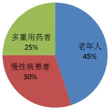 1.协同增强:1+1>2的“过强止血/抗凝” 某些药物作用靶点相同,联用会放大效果。例如: (1)抗血小板药叠加:阿司匹林(抑制COX-1减少血栓素A2)+氯吡格雷(抑制P2Y12受体)→双重阻断血小板聚集,出血风险显著增加(如消化道出血); (2)抗凝药叠加:华法林(维生素K拮抗剂)+新型口服抗凝药(NOACs,如利伐沙班)→过度抑制凝血因子,可能引发致命性颅内出血。 2.相互抵消:药效“互相拆台” 部分药物会干扰彼此的代谢或作用靶点。例如: (1)华法林+维生素K补充剂(如复合维生素片)联用→维生素K逆转华法林的抑制作用,导致抗凝失效(血栓风险升高); (2)肝素(增强抗凝血酶III活性)+鱼精蛋白(中和肝素)联用→过量鱼精蛋白可能导致短暂高凝状态。 3.代谢干扰:肝脏酶的“交通堵塞” 多数药物通过肝脏细胞色素P450酶系(CYP)代谢。当两种药物竞争同一酶时,会导致其中一种药物浓度异常升高或降低。例如: (1)华法林+抗生素:大环内酯类(如红霉素)抑制CYP2C9(华法林主要代谢酶)→华法林血药浓度升高,出血风险增加; (2)他汀类药物+抗真菌药:氟康唑抑制CYP3A4→辛伐他汀代谢减慢,肌肉毒性风险上升(间接影响凝血因子合成)。 三、典型案例:当“常规用药”变成“危险组合” 案例1:华法林+抗生素=出血危机 65岁王阿姨因肺炎服用左氧氟沙星(喹诺酮类抗生素),同时长期使用华法林抗凝。3天后出现黑便,检测INR高达8.2(目标范围2.0-3.0)。 原因:左氧氟沙星抑制肠道菌群合成维生素K(华法林作用的“对手”),同时轻度抑制CYP酶,双重作用下华法林效果被放大。 案例2:阿司匹林+布洛芬=“止血盾牌”失效 50岁李先生有冠心病史,长期服用阿司匹林(100mg/日)。因关节痛自行加用布洛芬(非甾体抗炎药),1周后出现皮下瘀斑。 原因:布洛芬与阿司匹林竞争COX-1酶,不仅减弱阿司匹林的抗血小板作用(血栓风险↑),还因抑制前列腺素合成增加胃黏膜损伤风险(出血风险↑)。 案例3:中药+西药=隐形的"平衡破坏者" 70岁张爷爷服用华法林期间,听信偏方加用"三七粉"(活血化瘀中药)。2周后INR降至1.5(抗凝不足),超声发现下肢深静脉血栓。 原因:三七中的皂苷类成分可能诱导肝药酶(加速华法林代谢),同时其活血作用与华法林叠加,初期可能因出血倾向掩盖抗凝不足,最终导致血栓。 四、高危人群与预警信号:谁最容易被“盯上”? 以下人群需特别警惕多重药物对止凝血的影响(见图2): 1.高危人群 (1)老年人:肝肾功能减退,药物代谢减慢;常合并多种慢性病(高血压、糖尿病等),用药种类多(平均5-8种); (2)慢性病患者:房颤(抗凝)、冠心病(抗血小板)、术后(抗凝+抗血小板)患者,需长期联合用药; (3)多重用药者:每日服用≥5种药物(包括处方药、OTC、保健品),相互作用风险显著升高。